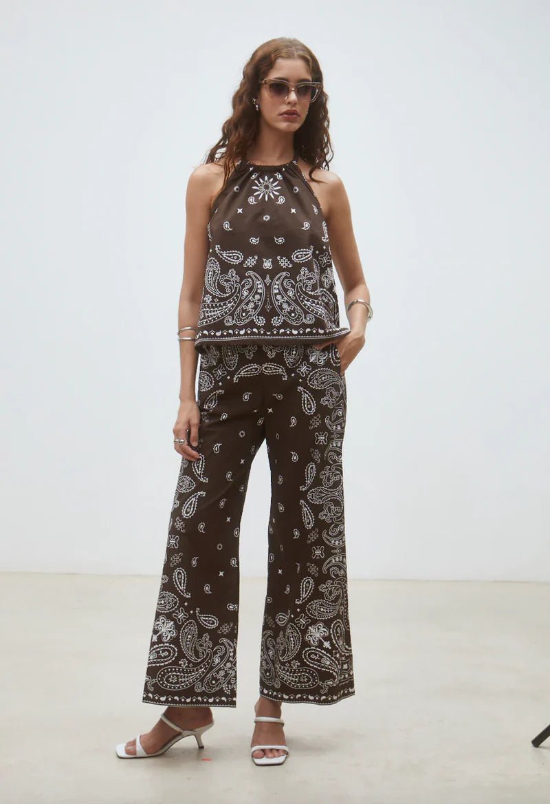 Discover the charm of the brown LOOKA top by SUNCOO, perfect for the sunny days of spring and summer. Made from airy linen, it is ideal for a picnic in the park or a relaxed afternoon on a terrace. Pair this stylish top with the Jessy Pant and you have a fun and lightweight set ready for the day!