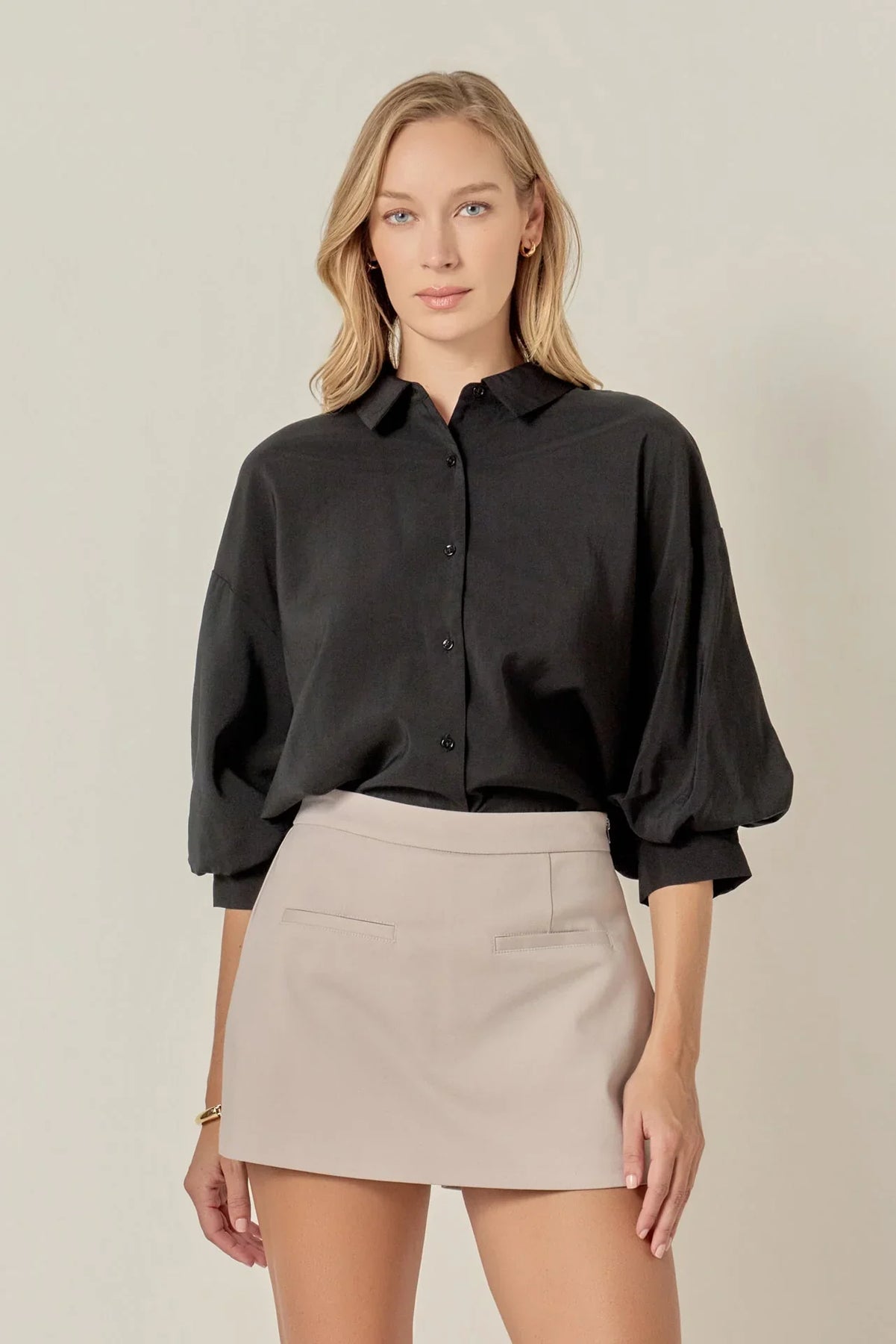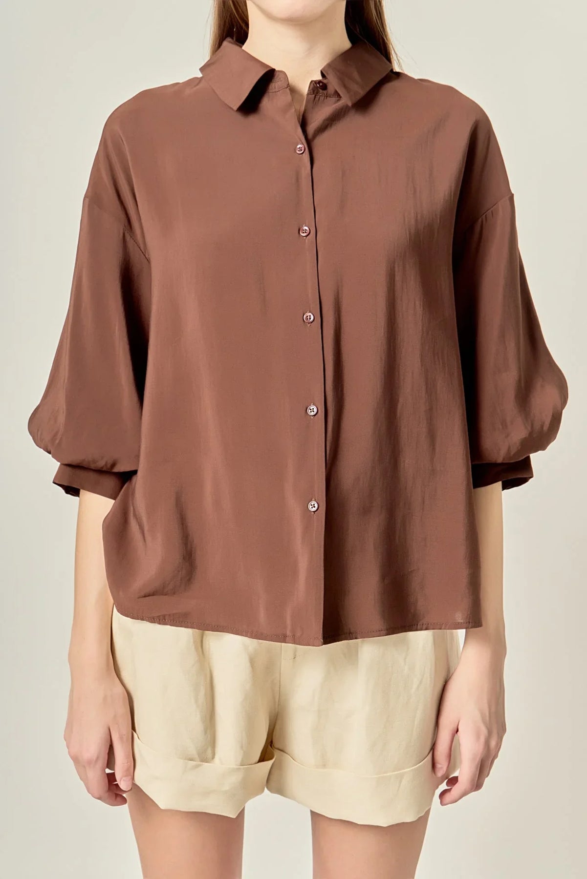English Factory Balloon Sleeve Shirt - Capri by Sunset & Co.