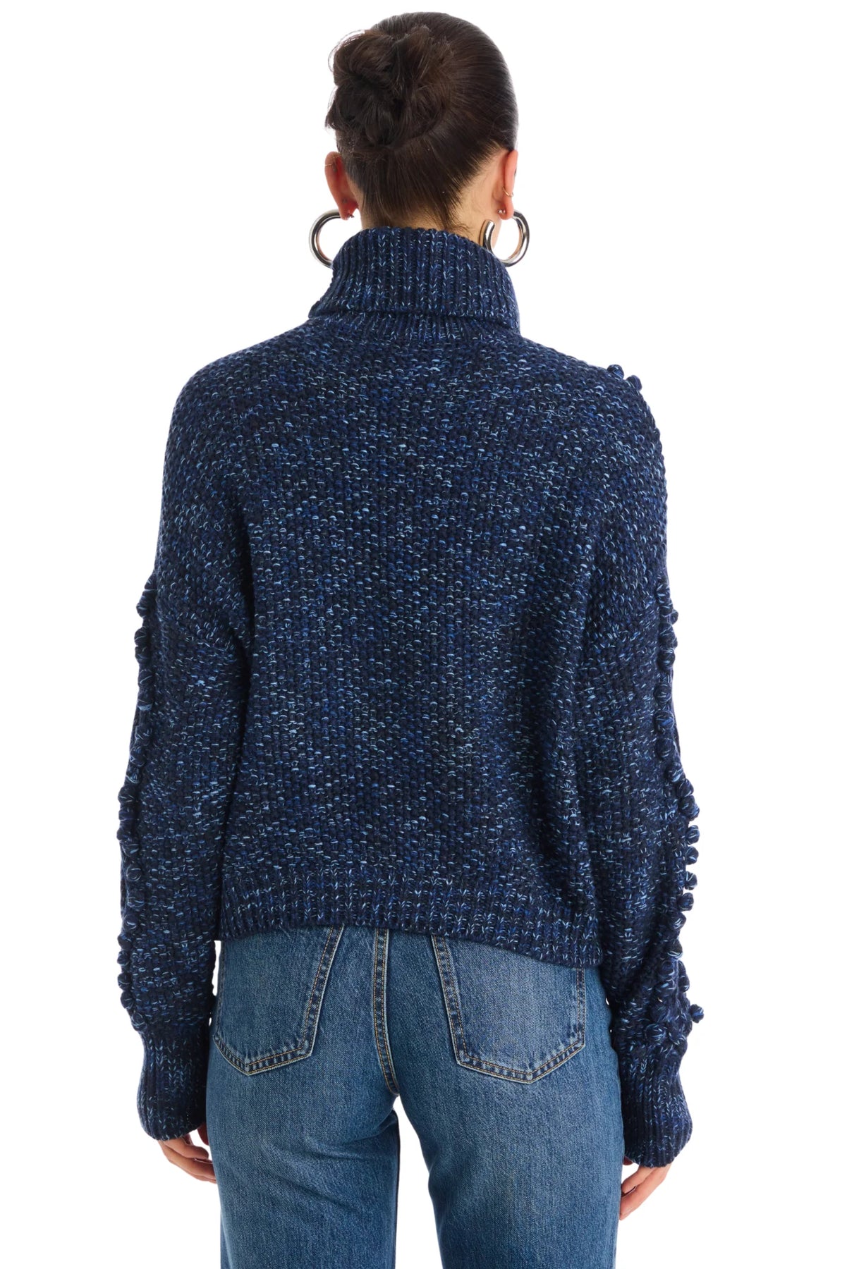 The DAPHNE SWEATER features playful hand-stitched pom poms and a slouchy, relaxed fit for a cozy look. A best seller every Fall!