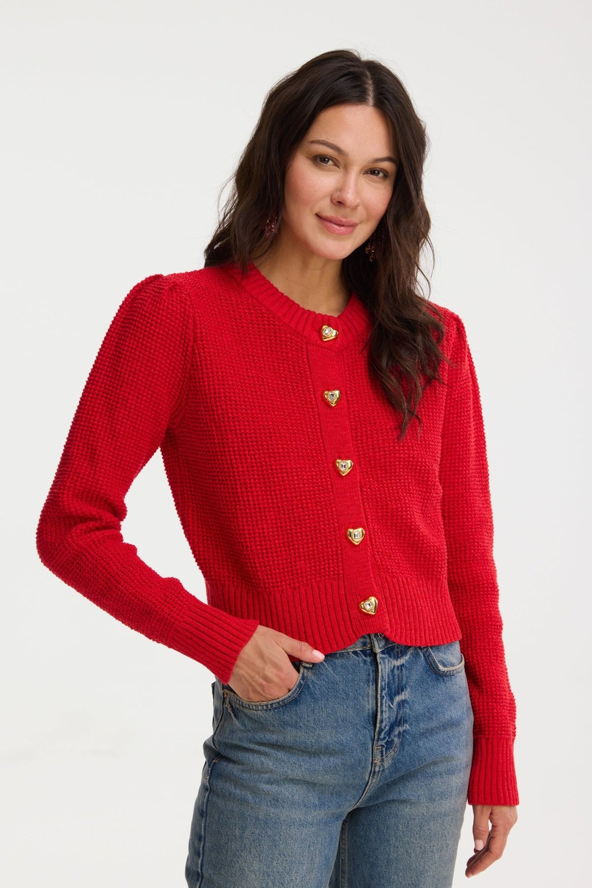 The Gia cardigan is crafted from lightweight yarns with a relaxed shape and slight shirring at the shoulder. Finished with bold gold buttons, this sweater is timeless year-round.