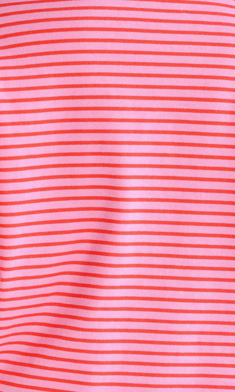 Earn your style stripes with our Nadine set. The two piece is made up of a long sleeve boxy top and matching shorts both in a rugby stipe. The pink and red set is the perfect pair for a day running errands, a travel fit, or a day adventuring on vacation. The collared top and ric rac trim add a nice polish to the relaxed number.