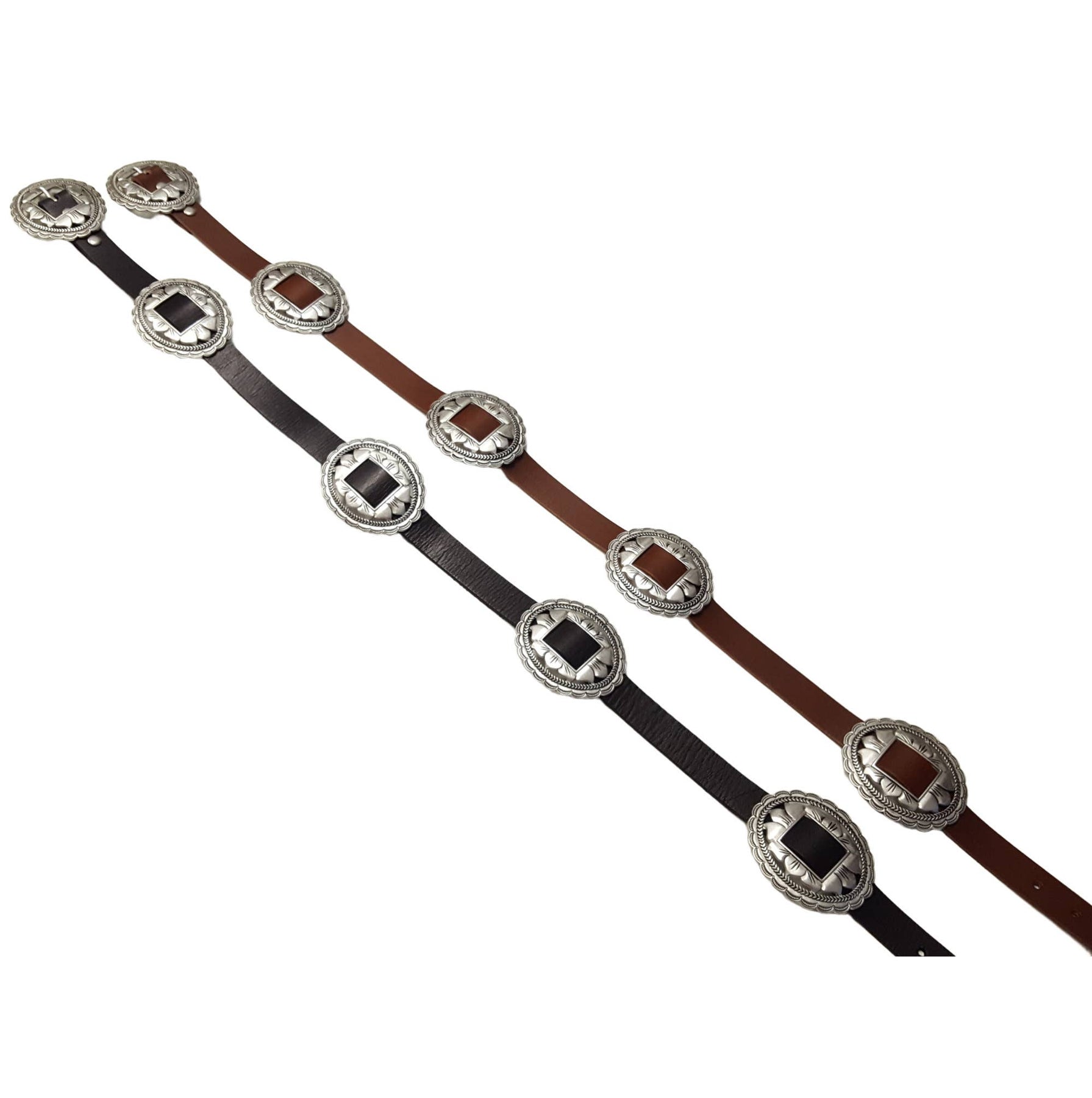 Axesoria West Oval Floral Concho Leather Belt - Capri by Sunset & Co.