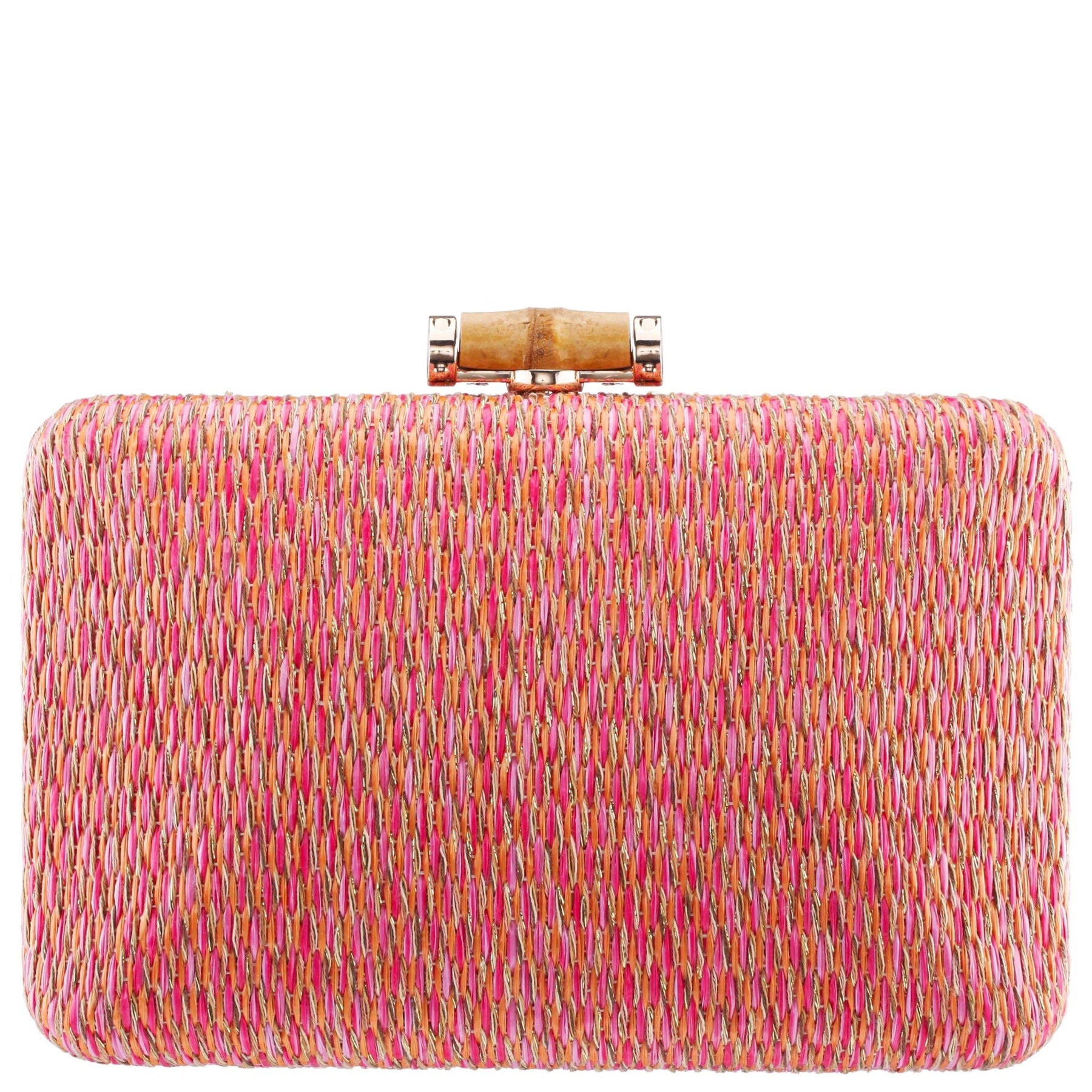 Bring a burst of color and texture to your warm-weather looks with the MALIA-P by Nina, a woven raffia straw minaudiere designed to turn heads. The multicolored finish adds playful charm, while the compact shape and gold-tone lift lock closure keep it elegant and refined. Whether you wear it over the shoulder or carry it as a clutch, MALIA-P by Nina is the perfect companion for festive days and vibrant nights.